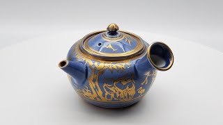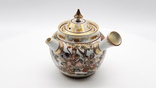 急須の蓋裏や箱の蓋裏に周平が自ら記した銘文から、煎茶道花月菴流の祖となった田中鶴翁(1782~1848)のために作られたことが分かる。同様に羅漢を描いた類例として、兵庫陶芸美術館所蔵品1点、メトロポリタン美術館(ニューヨーク)所蔵品1点、個人蔵2点が確認できるが、本作はひときわ絵付けが繊細で金彩の使用量も多く、特注品であることがうなずける。