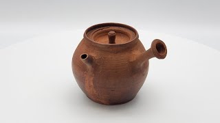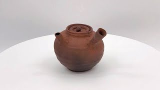 胴にロクロ目を残した、ぼってりとした胴部が特徴的な急須であるが、見た目よりも手取りは遥かに軽く、薄作りの把手は鋭利である。蓋の端部を内側にひねり返した形状は、東南アジアもしくは中国南部で作られ、抹茶道具の南蛮芋頭(なんばんいもがしら)水指に見立てられた壺の、蓋の形状を模倣している。 この急須を納める箱の蓋裏には、丁酉すなわち天保8年(1837)の冬に、尾形周平がこの急須について、「先老空仲」、つまり父である初代道八作の唐物写急須であると鑑定した旨を記している。この書付は、初代道八と尾形周平を考えるうえで、極めて重要な情報をはらんでいるのである。